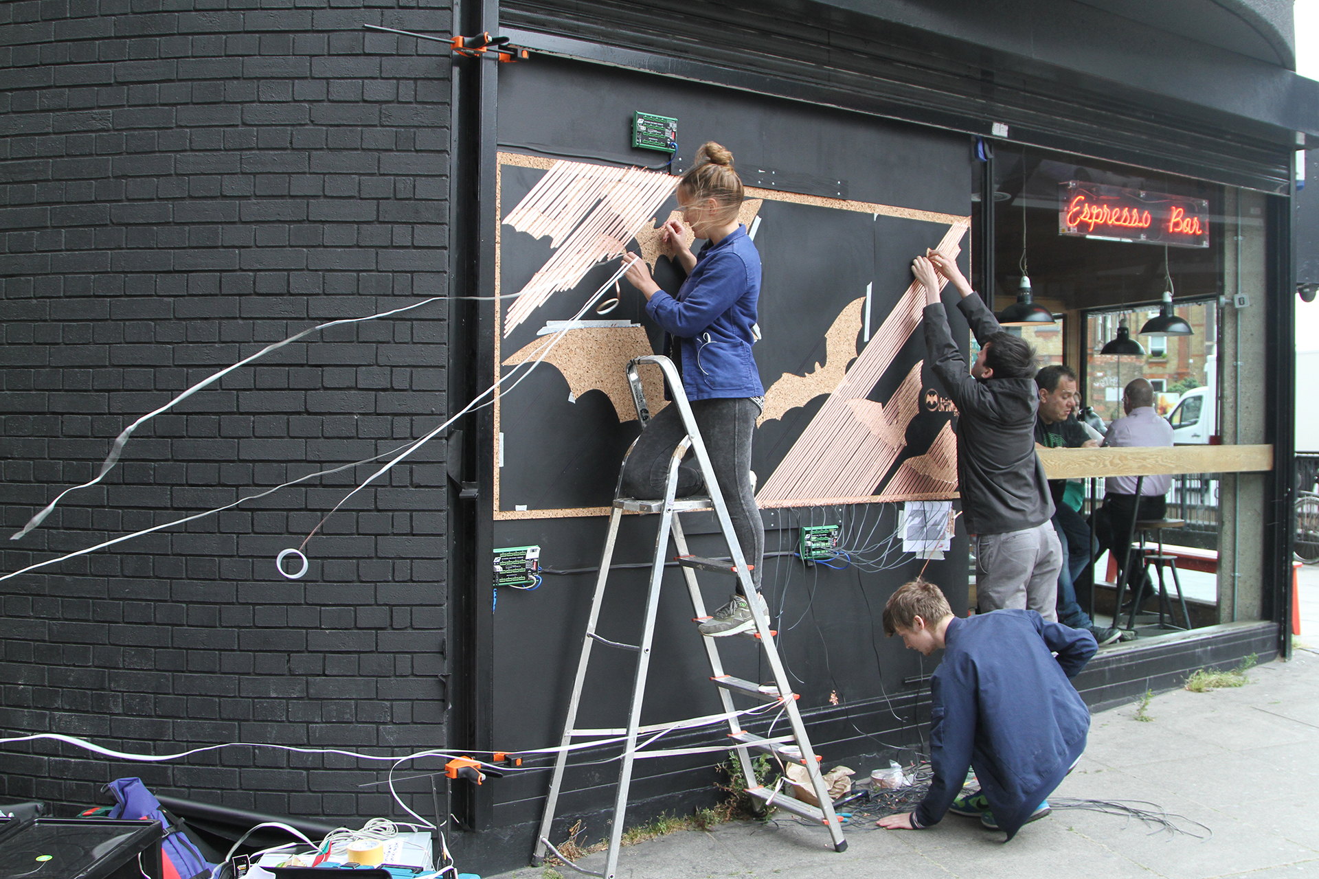 We created an interactive art installation on London’s Shoreditch Roundabout that brought passersby into the process by encouraging them to put an LED into a copper tape and cork board to help bring the bats to life. The key driver of the installation was to allow people to be a part of the process instead of just onlookers.