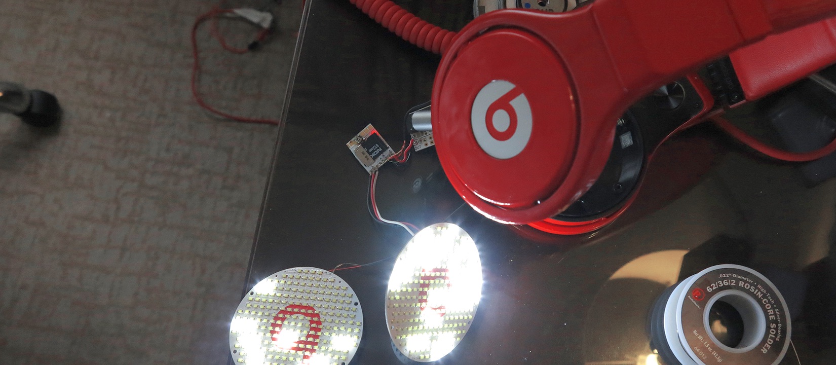 We were approached by Beats by Dre to embed a pair of their headphones with a high resolution LED display. We created a bespoke LED matrix that could play generative visuals and also react to the music being played. This custom design solution was created and presented to their senior marketing team in 8 days, from concept to delivery.