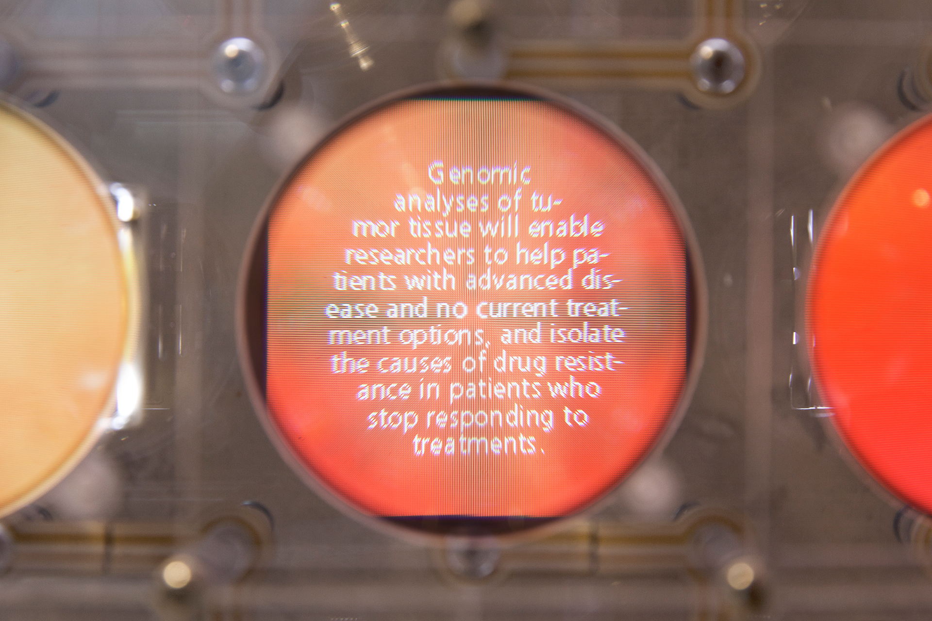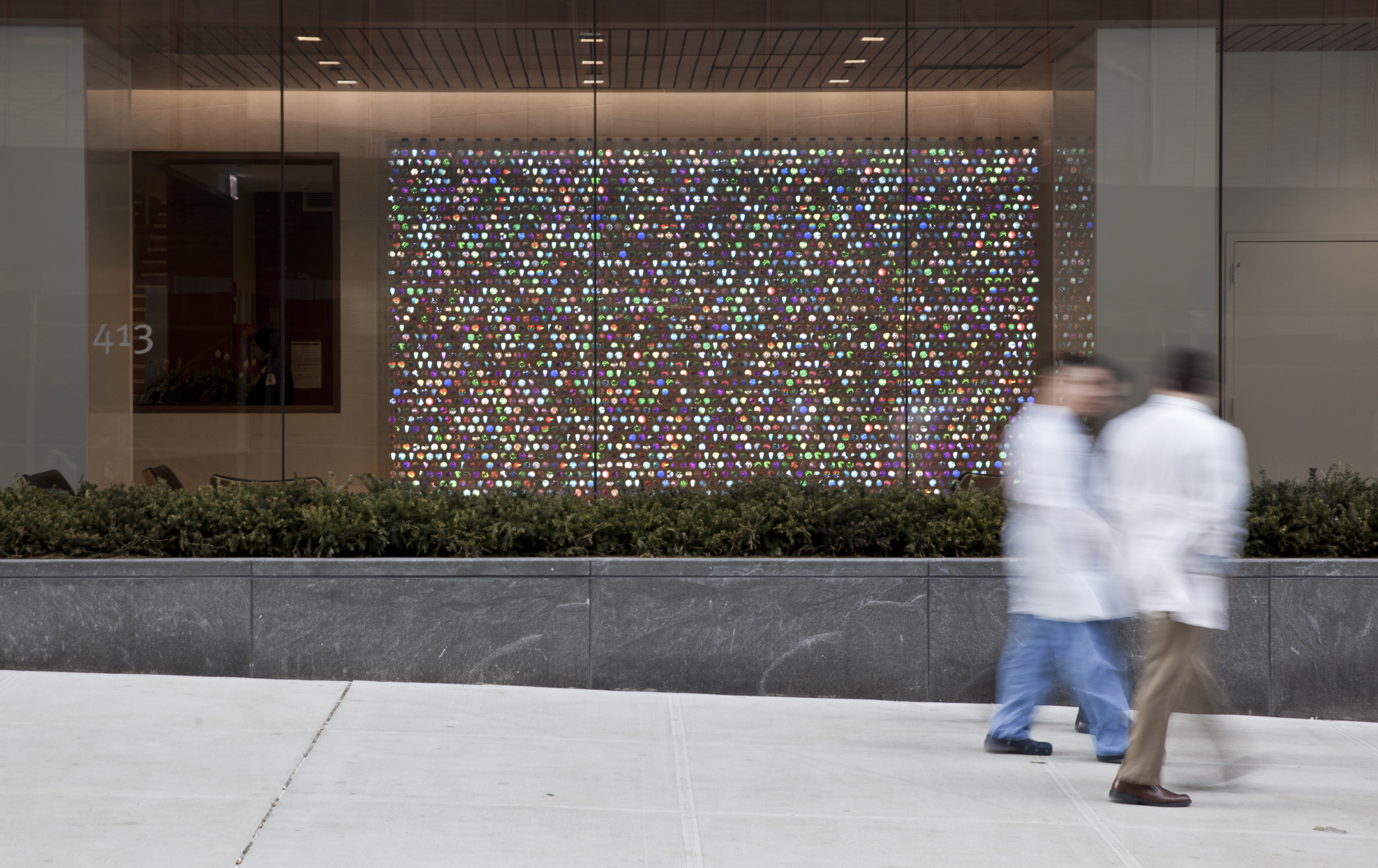 Weill Cornell Medical College is a biomedical research centre and medical school has thousands of top-secret research projects across a wide range of fields from health care policy to all sorts of infectious diseases. As a part of their new development of a high-end research facility in New York’s Upper West Side they wanted a permanent art piece that shared all their amazing work. The process of designing a complete bespoke art piece for the college had to take into consideration a large number of complexities including the secrecy of the research, the sheer amount, the huge importance of the donors as well as working within the architect’s vision of the space.