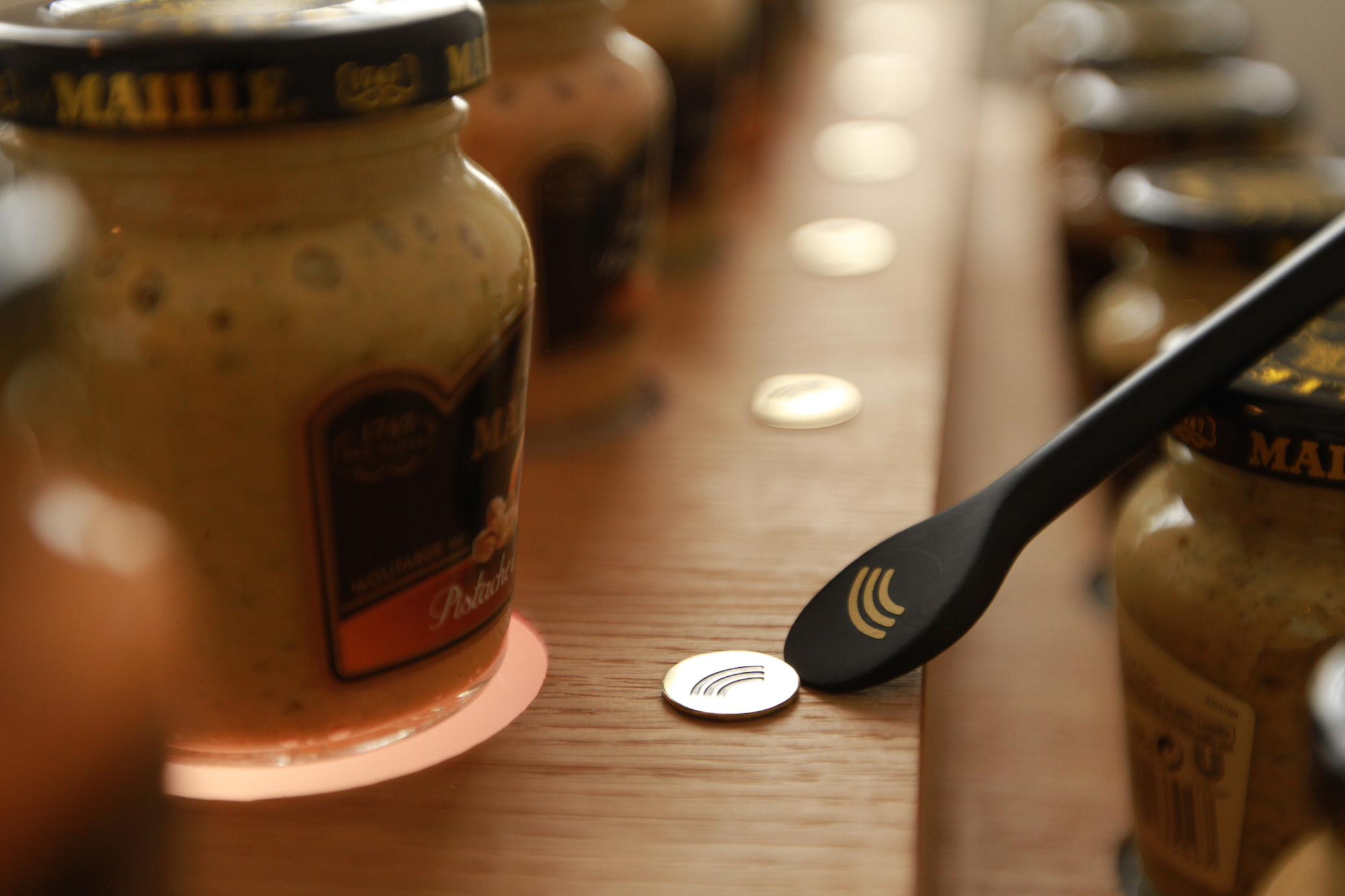 In collaboration with Mr President, we created the smart Maille Discovery Spoon as a tool for the in-store sommeliers to turn tasting experiences into data. As the sommeliers explained the different flavours, customers could tap their smart spoon on a RFID sensor in front of the jar allowing them to save all their favourites.