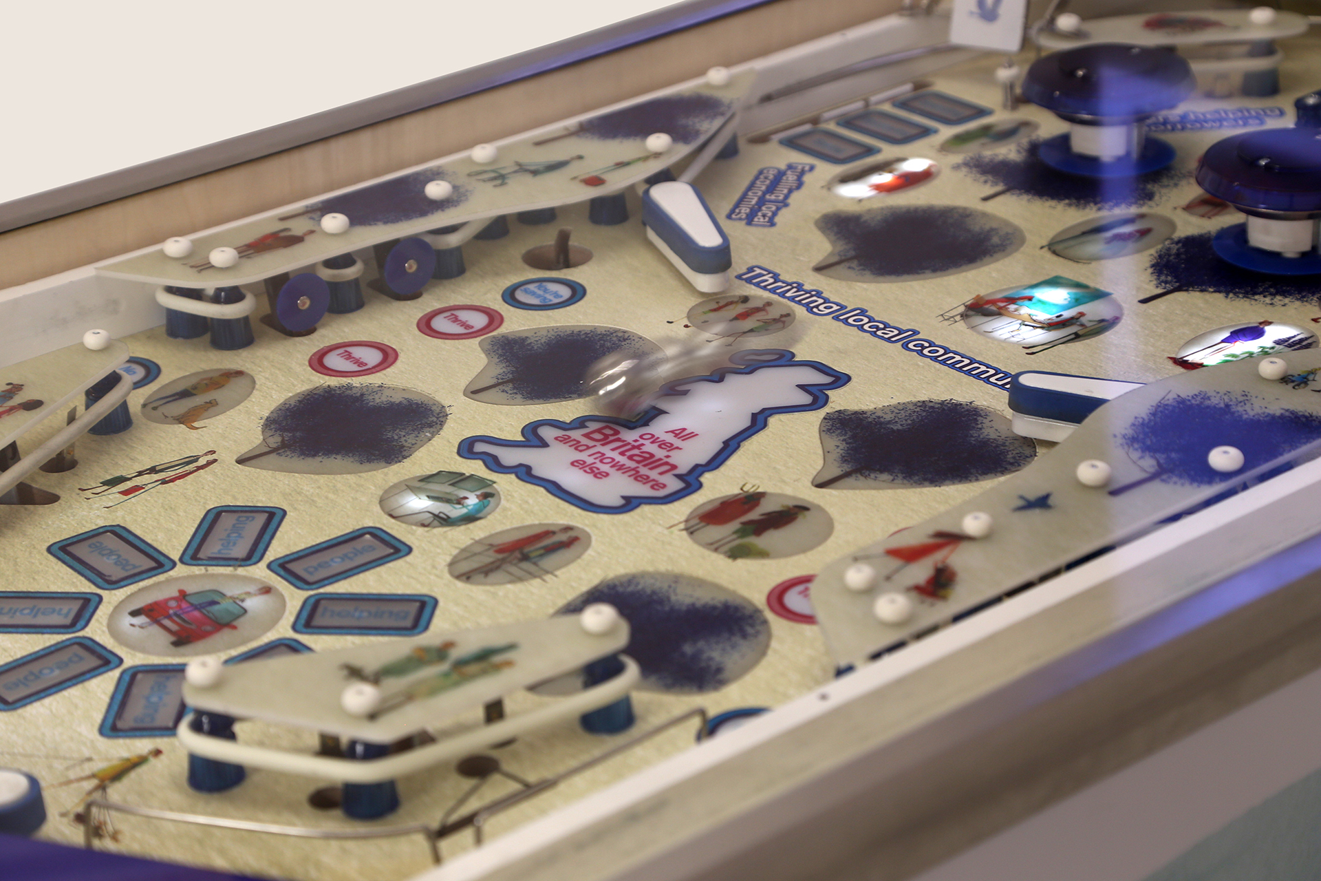 The exciting game play narrative rewarded investing in locally-focused TSB and highlighted the risks of investing in other internationally-focused banks. With integrated video and audio clips and a beautifully designed playfield and cabinet, the pinball machine was a fun way to attract the attention of politicians and attendees at all three UK political party conferences.