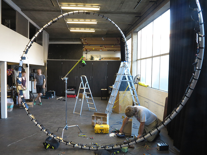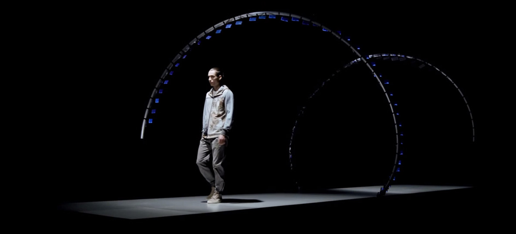 Ryan’s concept of a spiral rig holding that a model walked through wearing items from his SS14 collection enabled us to stop time. The resulting time slice imagery was created using 100 Sony Xperia phones with bespoke Android software ‘Uber Snap 9000’.