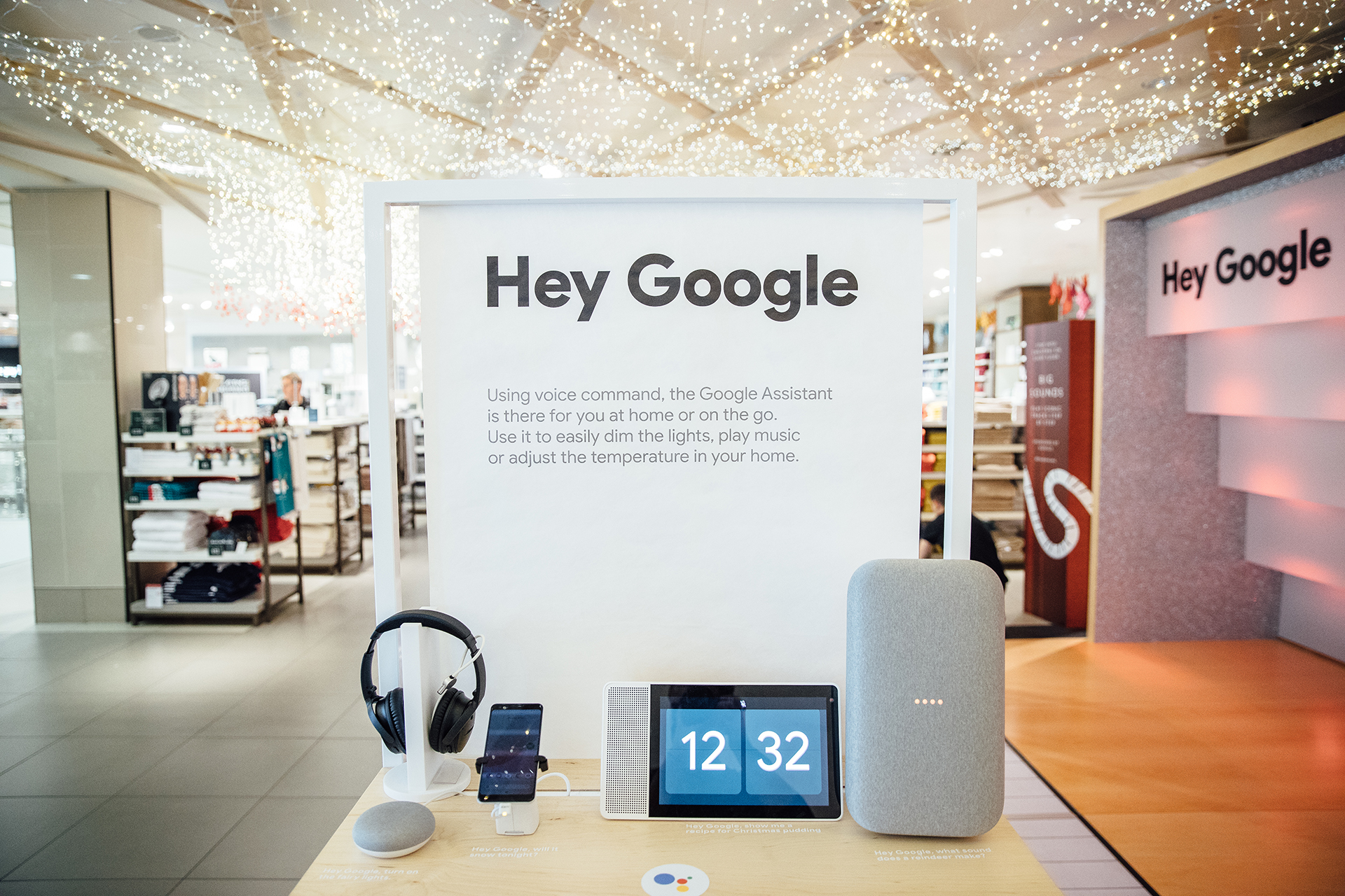 The customer has the opportunity to further explore the Google Assistant on other projects on the second plinth and maybe try out some features like turning off/on the fairy lights with the help of the assistant.