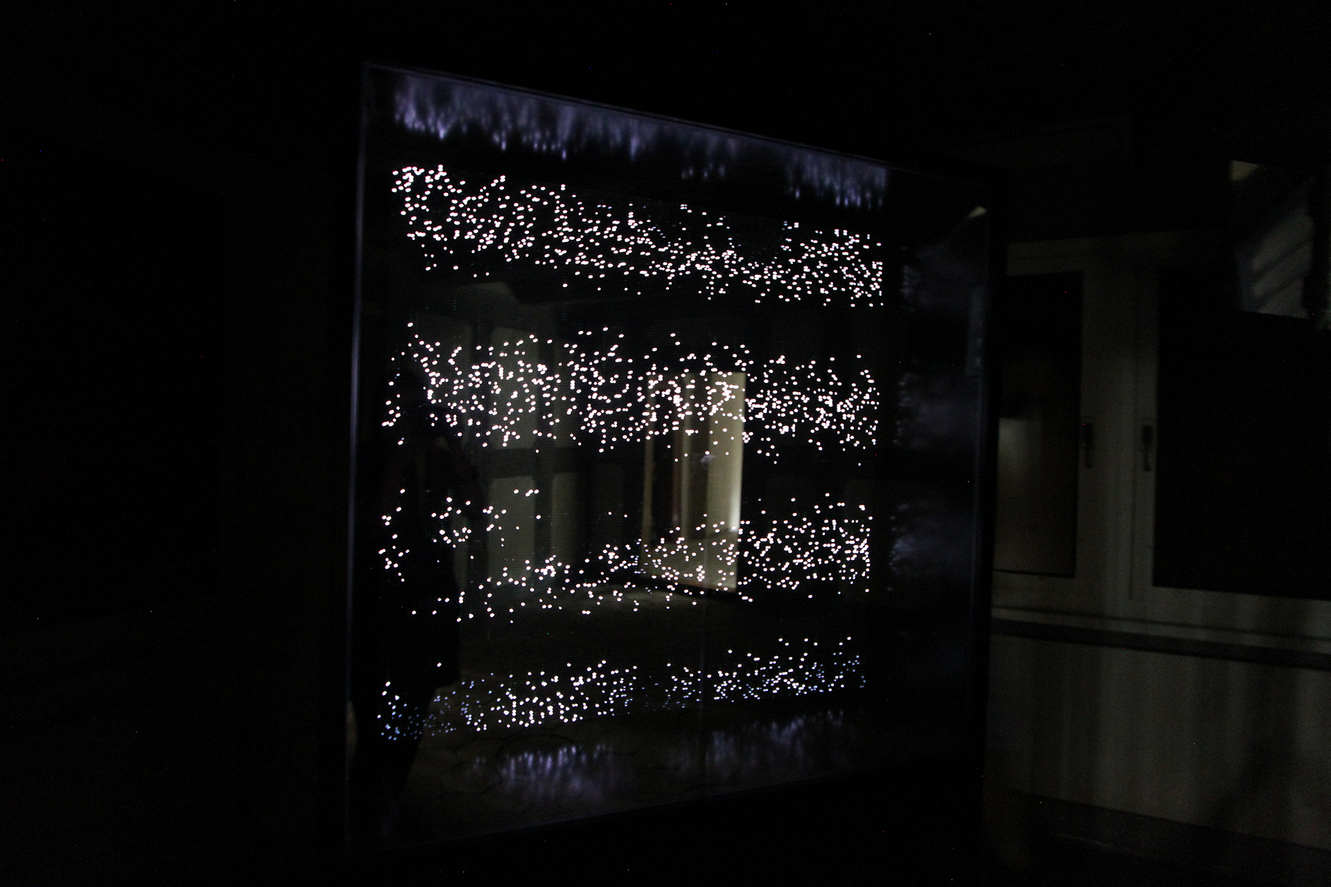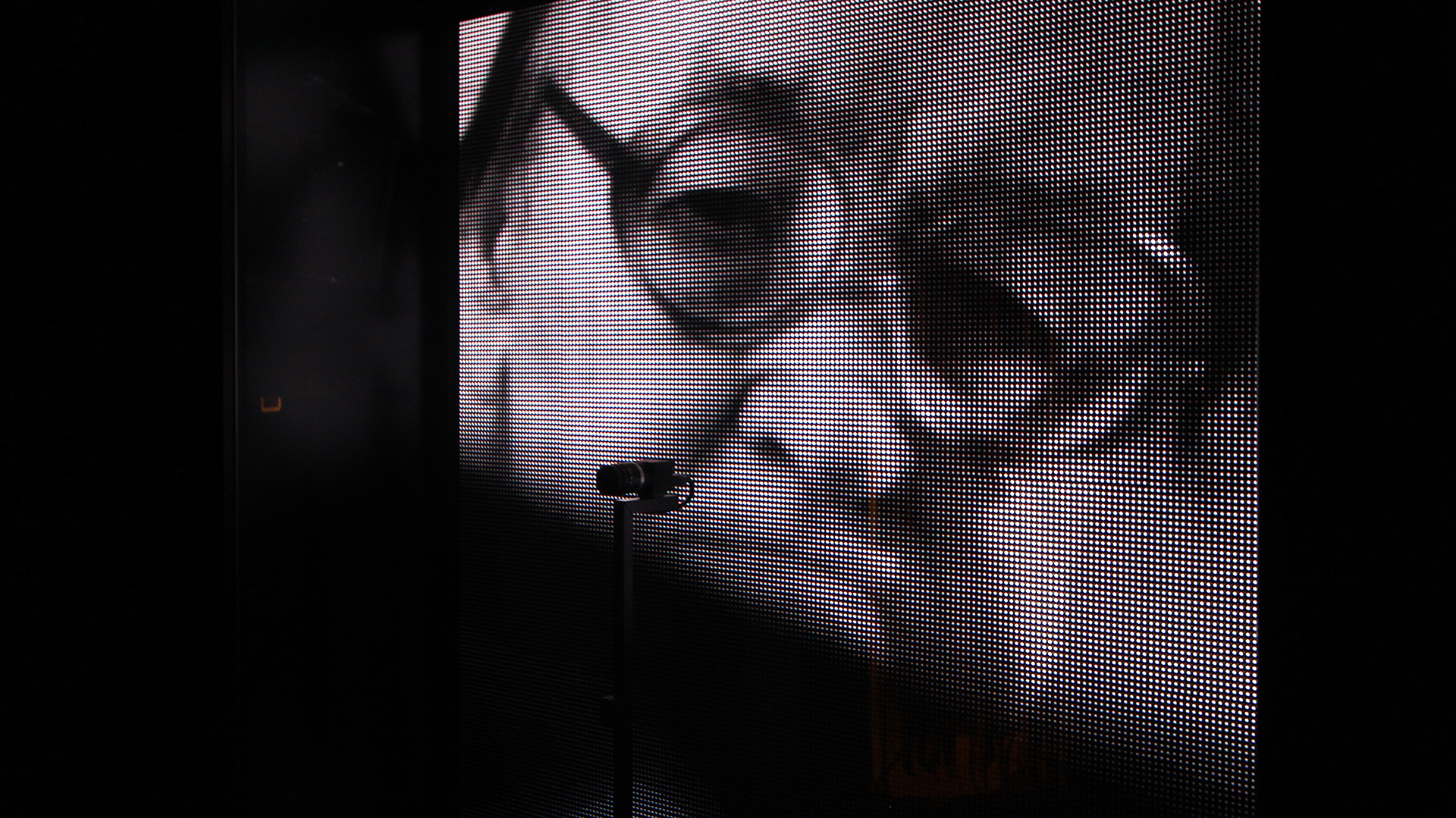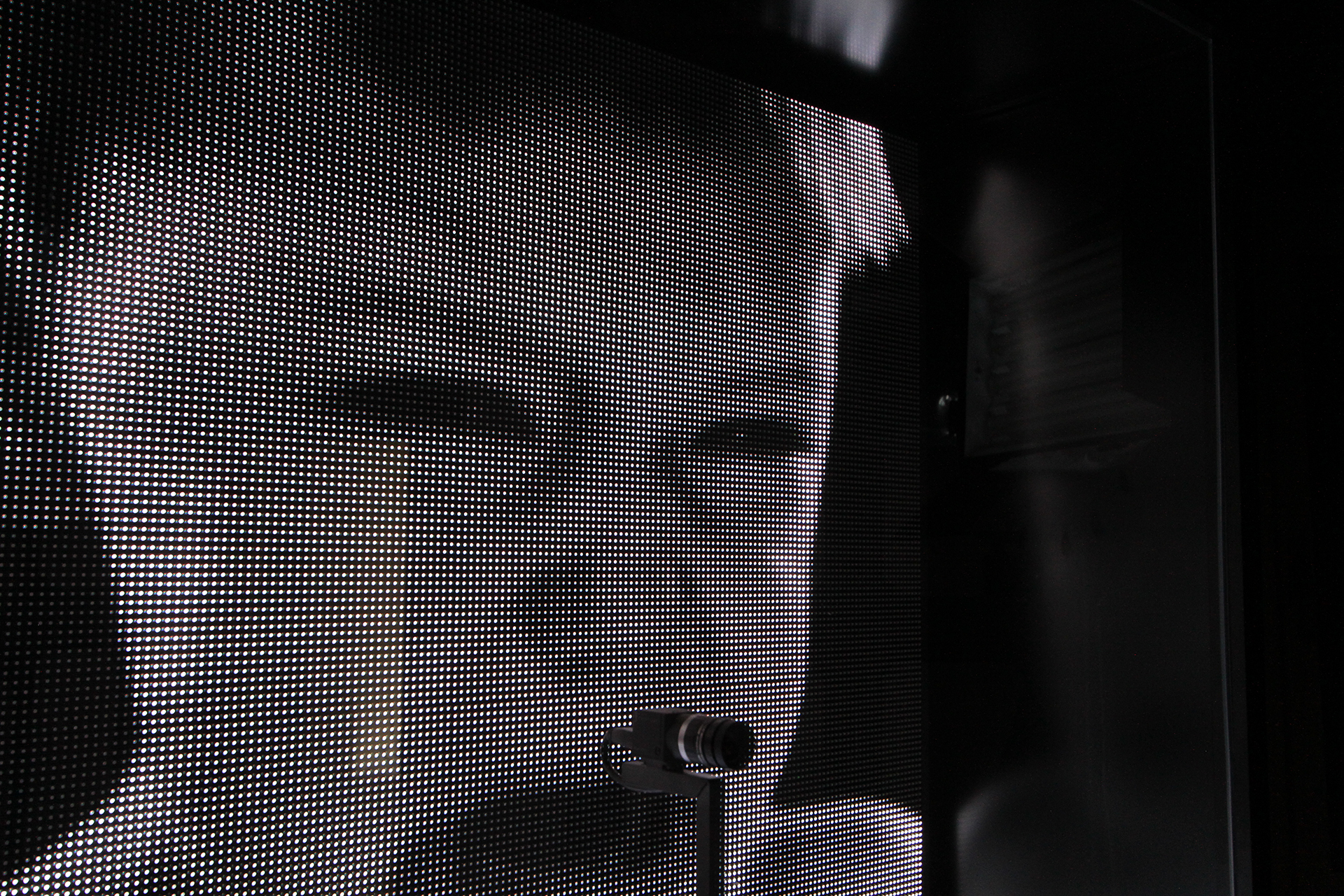 An individual experience where the participant walks into a room to see what looks like a mirror reflecting themselves back. Very quickly it converts into a fast paced video with graphic images of different stages of life. Finally they are shown the video taken from the mirror stage at the beginning before their image freezes and becomes a negative that shows the pixels slowly disappearing.